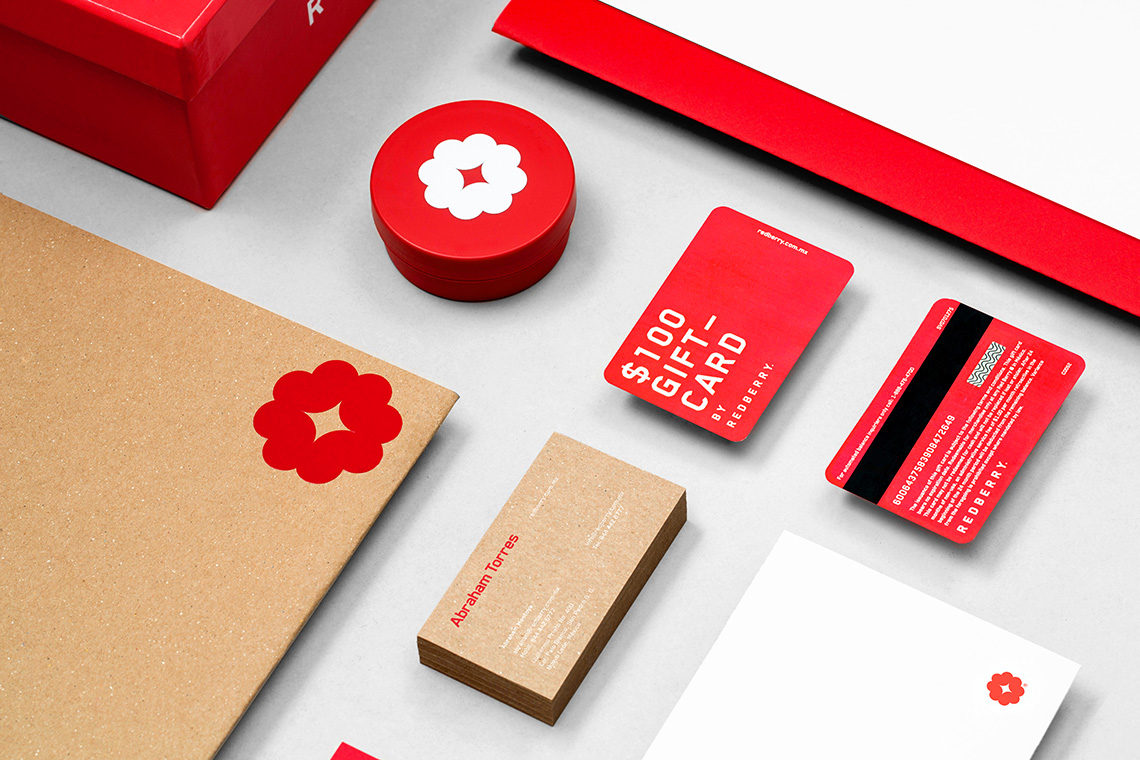 Our branding proposal takes off from the store's name, Redberry. So we designed an iconic logo based on the simplification of a raspberry's unique shape. On the other hand, the typographic style and the main single-color selection within the identity act as the contributing factor that defines the brand with an industrial / modern style.