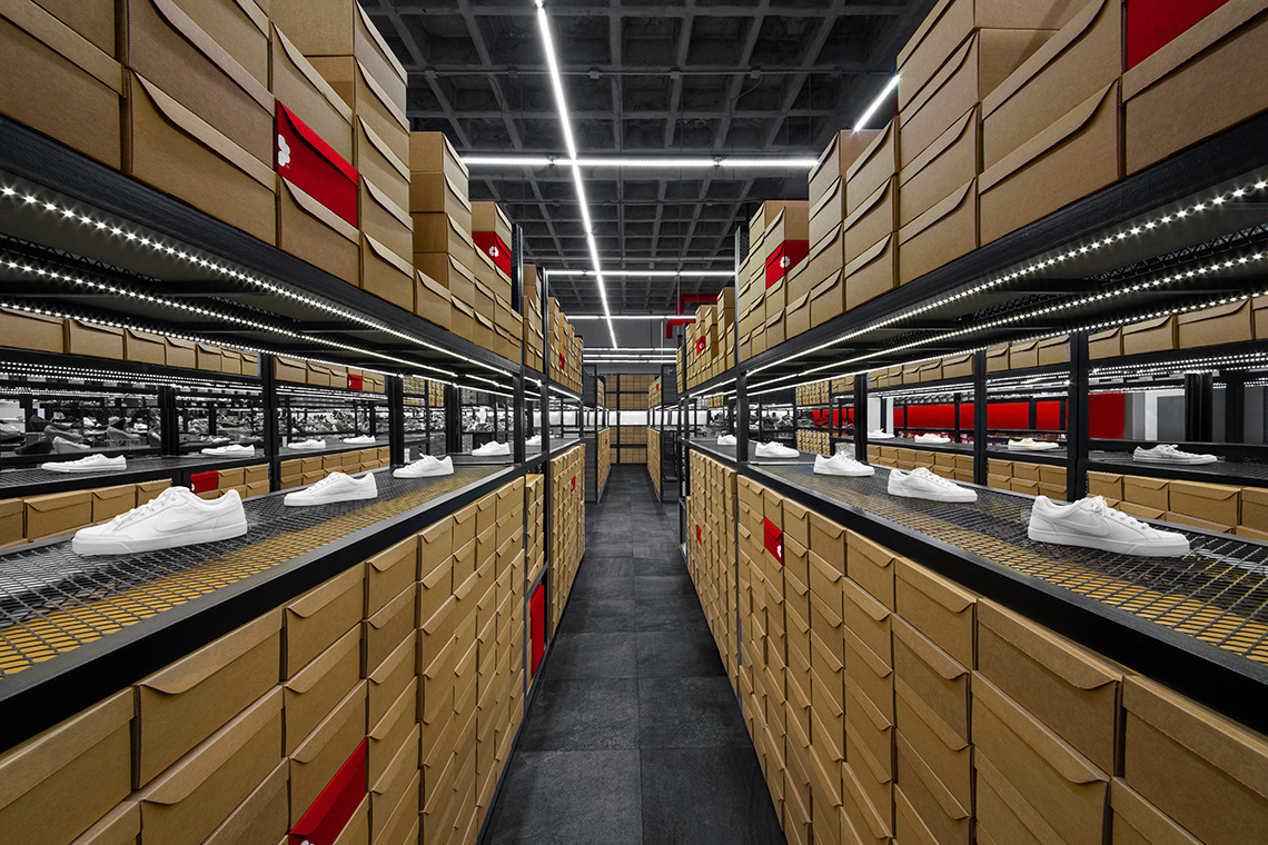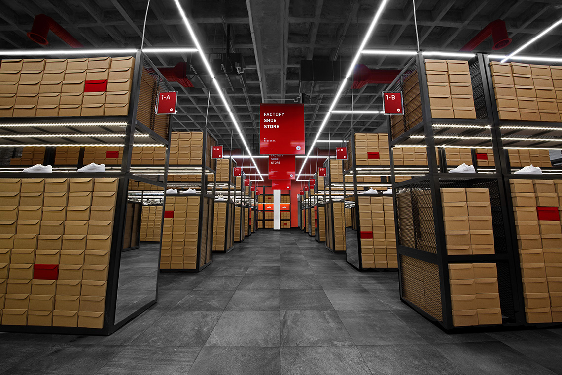 Our interior design proposal immerse the consumer in a factory-like setting.