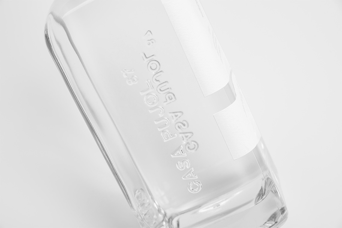 We developed a simple brand that manages to highlight these attributes elegantly. The typographical arrangement has the objective of extolling the most remarkable product information: Its origin and quality. The color palette considers very neutral tones harmonizing with the simplicity of the product's presentation. We introduced a gold & blue ribbon that wraps the packaging adding a touch of elegance and distinction. We were also in charge of the creative direction for the glass bottle physical design. The guiding concept in the bottle's design process was achieving consistency between the brand values and materials employed.