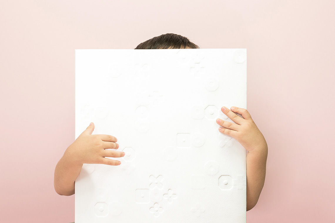 The brand is inspired by a didactic bead maze made up of geometric shapes