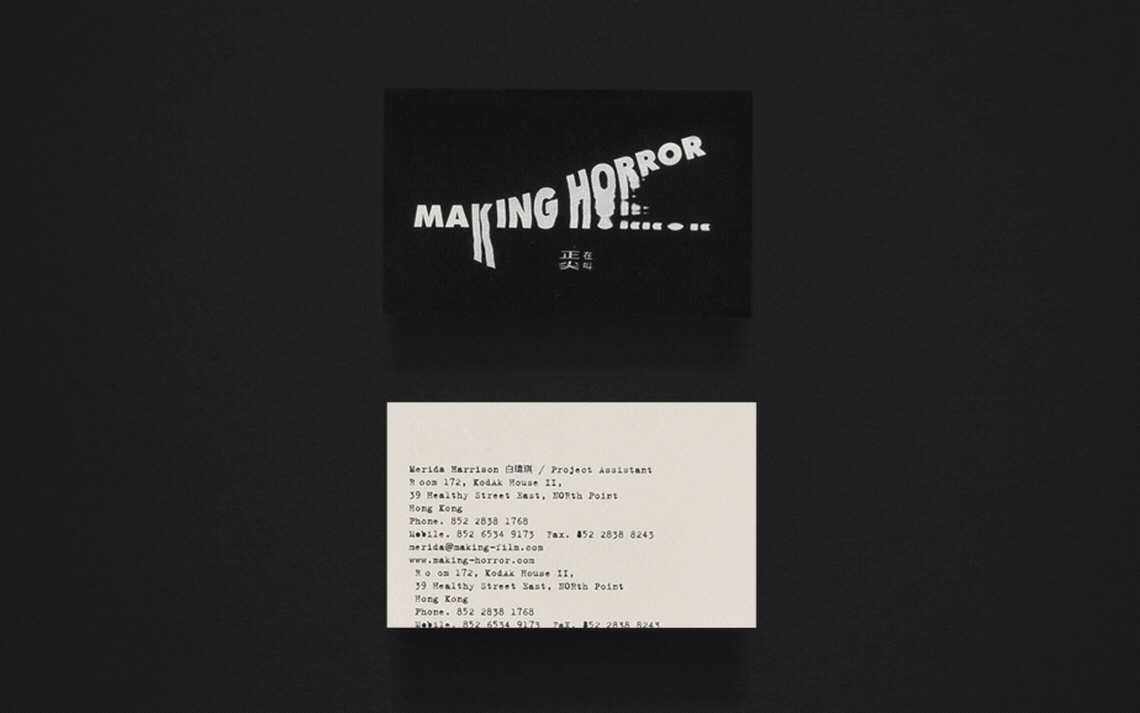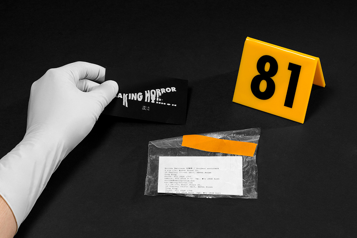 Making Horror is a new film label that focuses on horror and thriller films, based in Hong Kong. The brand tells a story portrayed through a forensic detective’s eyes, implicitly presenting elements of terror and mystery through the use of crime scene components.