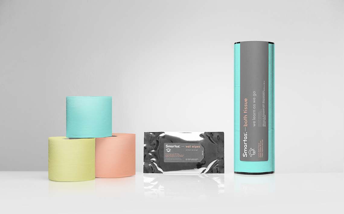 Smartas is a brand dealing in lively and bold disposable articles. Their prime commodity is toilet tissue, which is sold in various color and odor presentations.