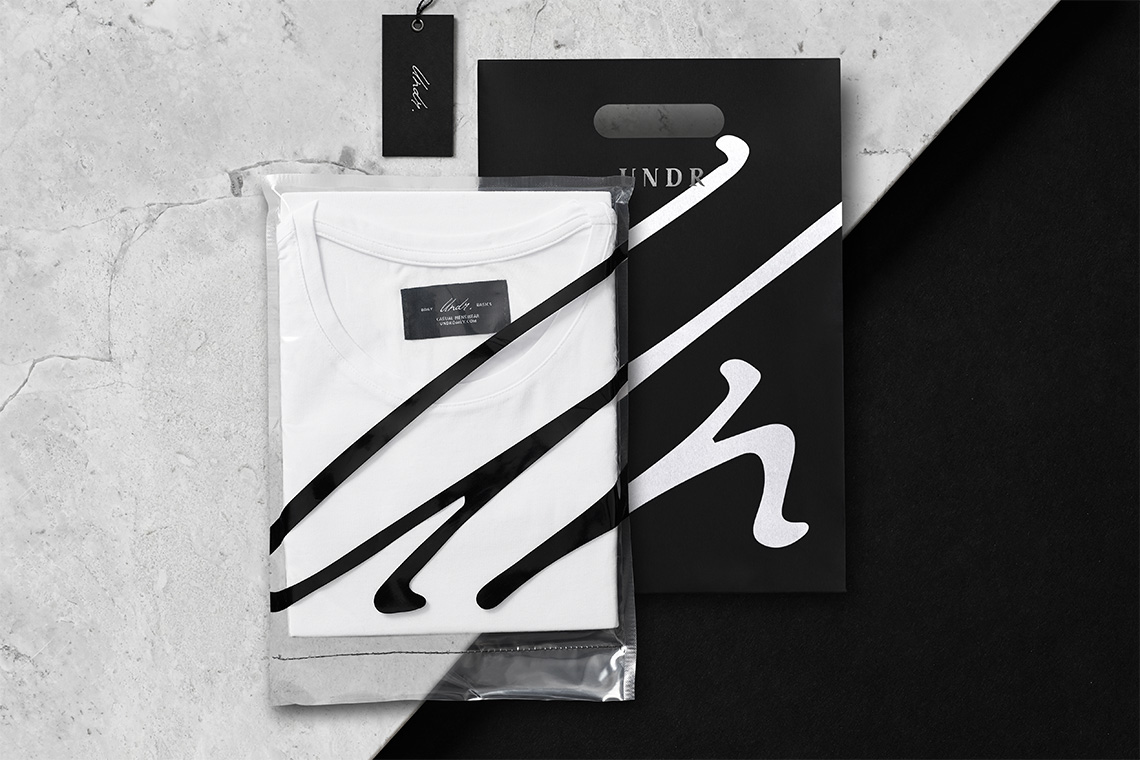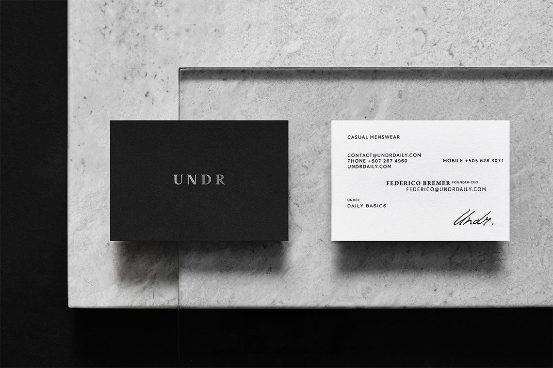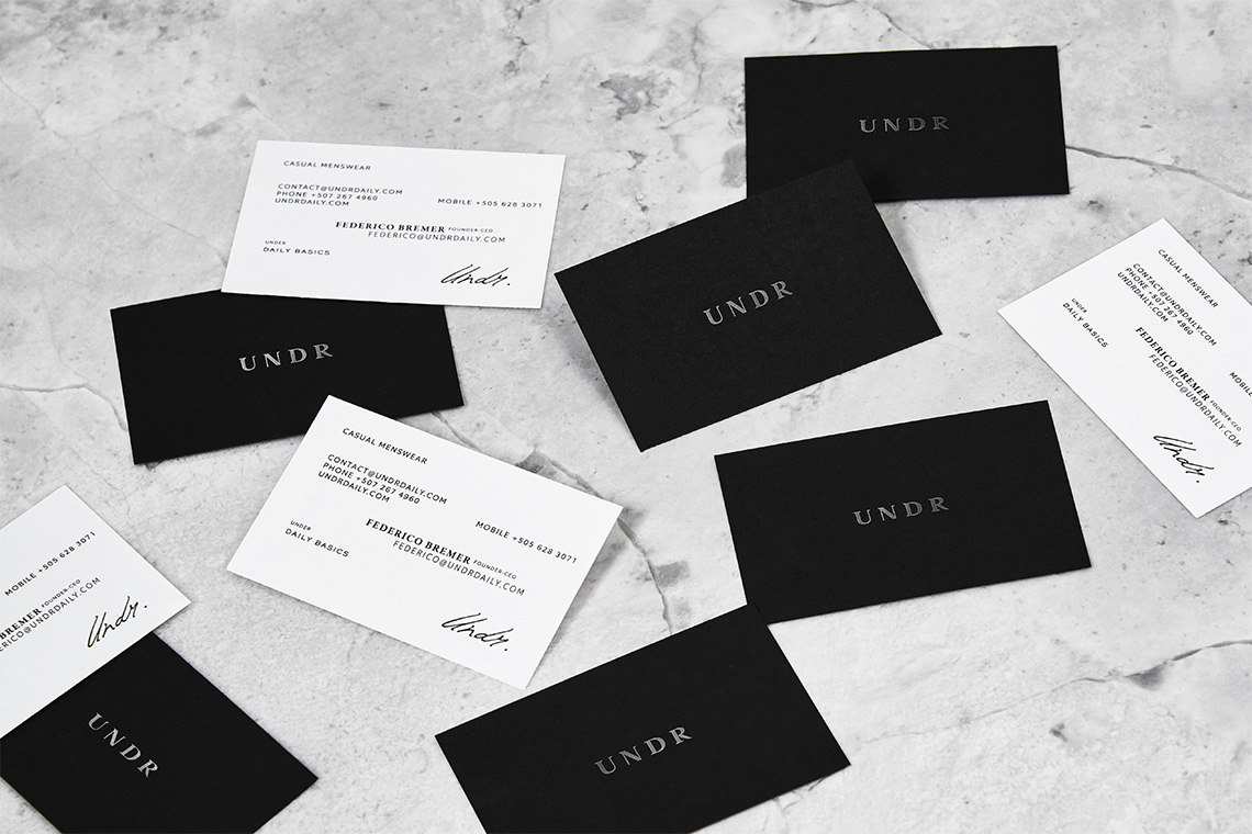 The proposed identity highlights the quality that characterizes its products. The logo composition works in a personalized calligraphic and serif versions. The balance between both typographical styles represents Undr's distinctive versatility and timelessness. The brand employs a neutral color palette with a distinctive unique tone achieving an interesting visual equilibrium — (A)
