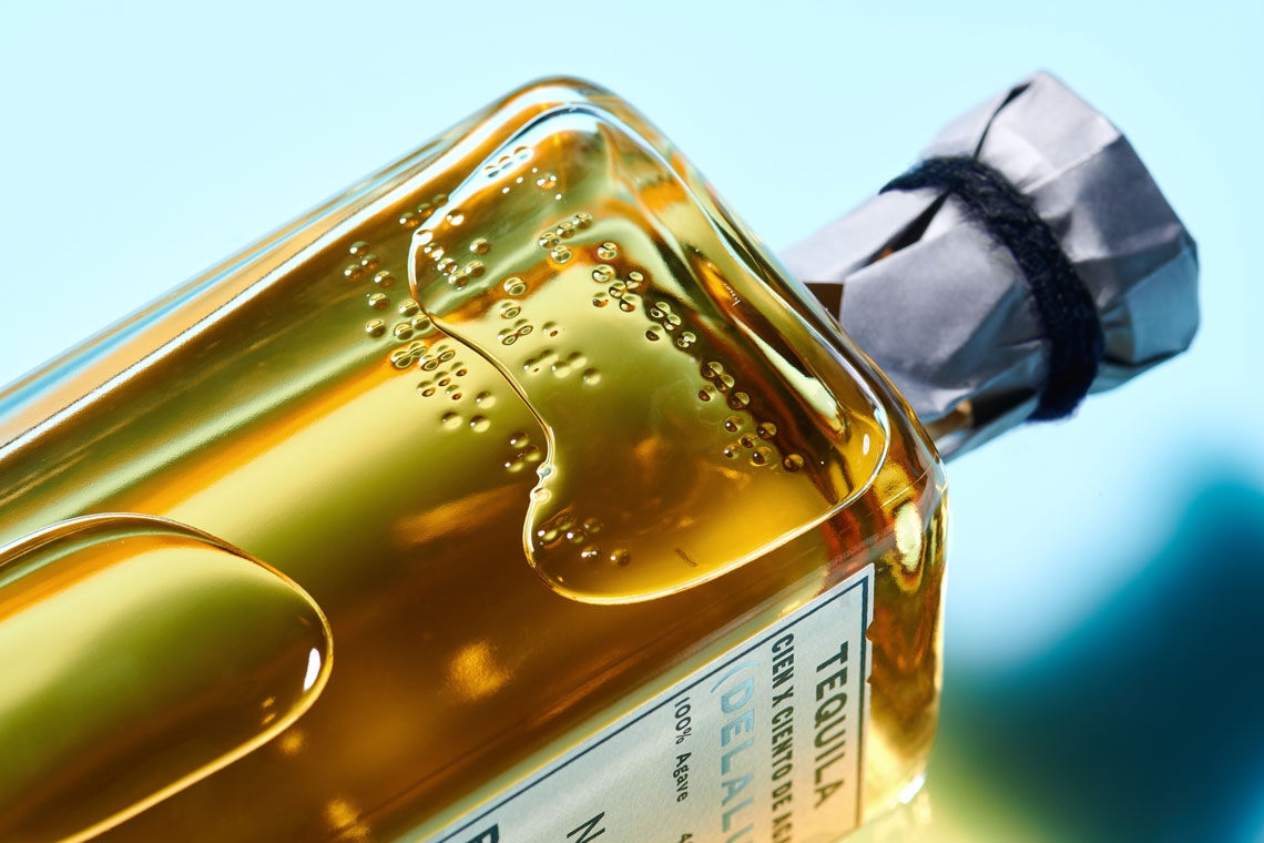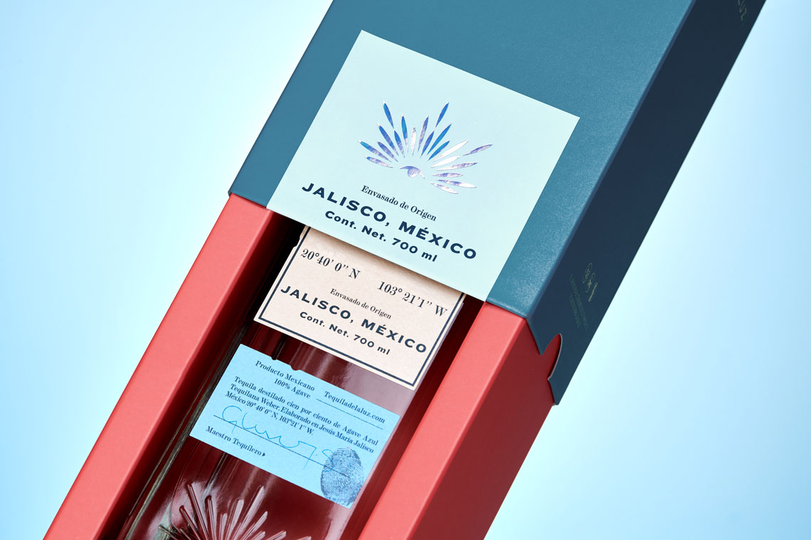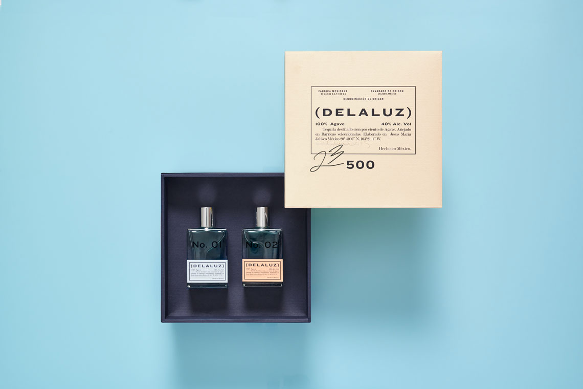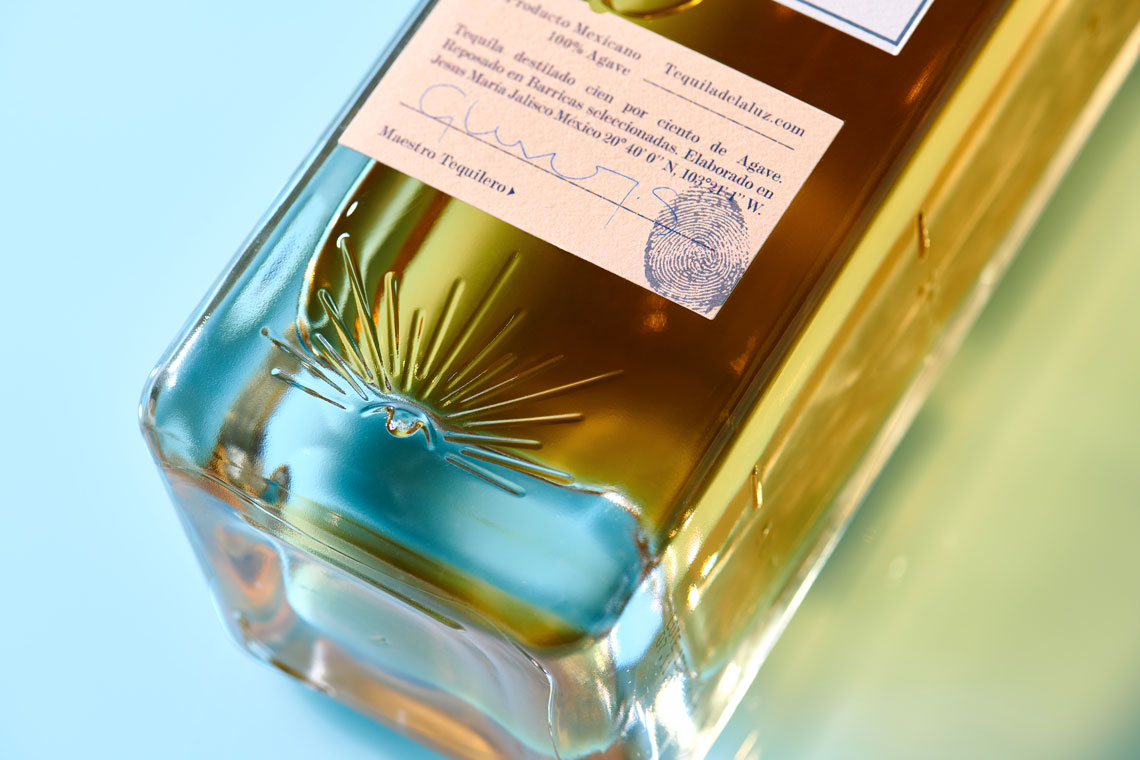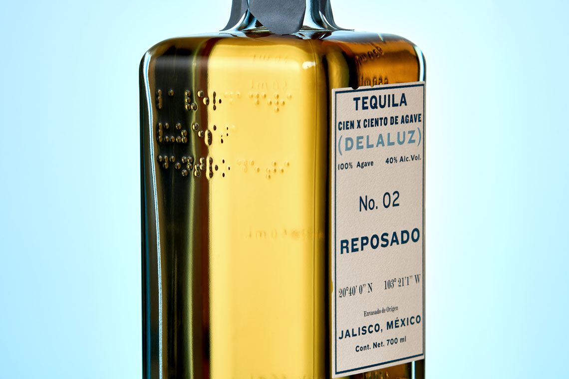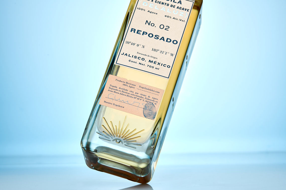 For Delaluz, we claimed the task of designing a bottle from its conceptualization. The bottle stands out for its relief composed by the identity icon, the bottle content's volume in milliliters and a legend in Braille. The icon developed for Delaluz resembles the geometric detail commonly visualized in cut glass. The labels, inspired by an Apothecary style, reinforce the association between the formula and the Tequila manufacturing procedures. — (A)