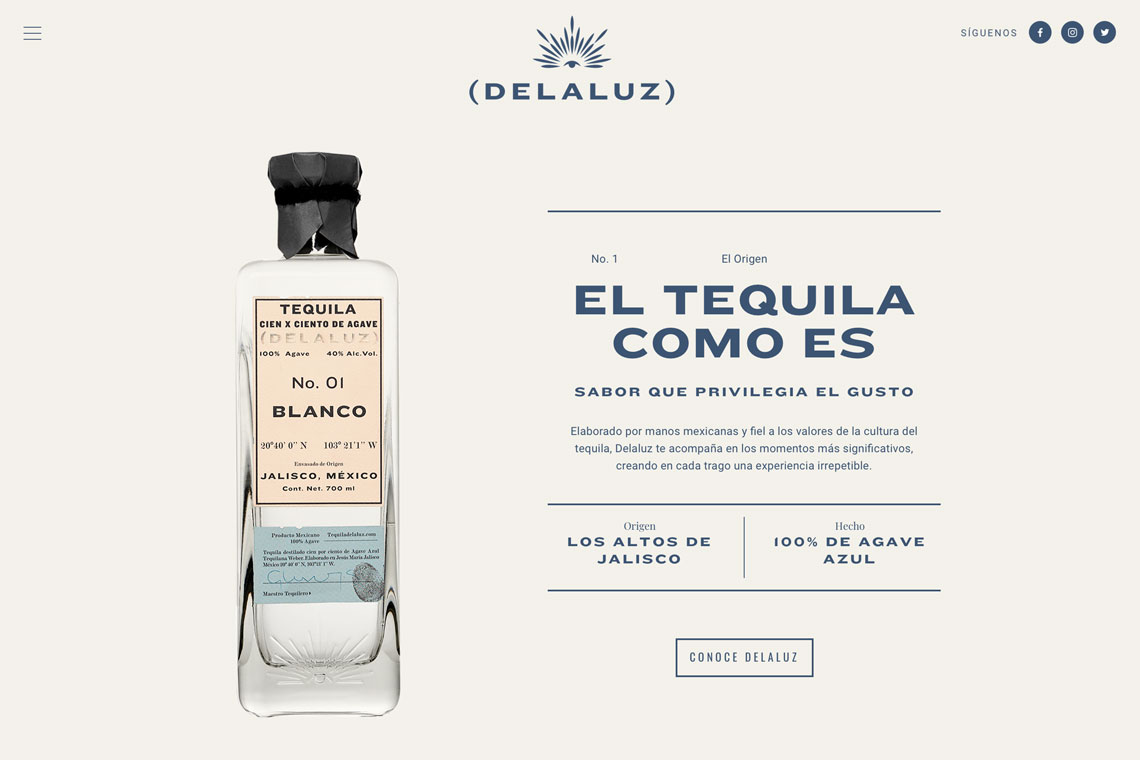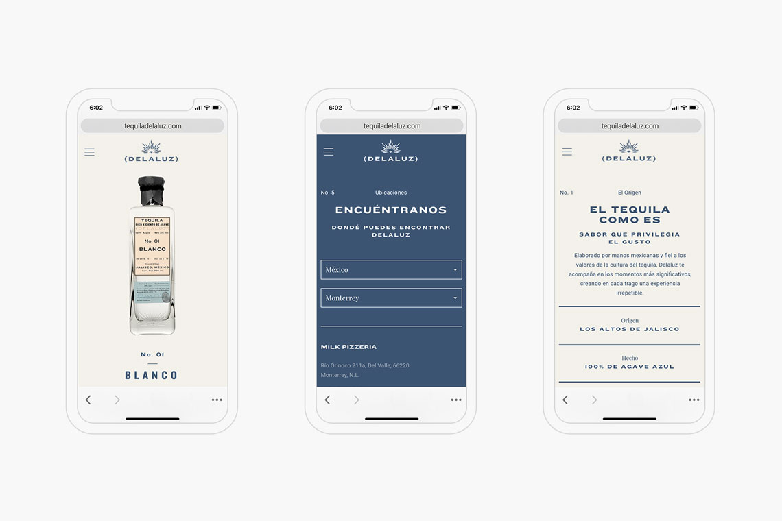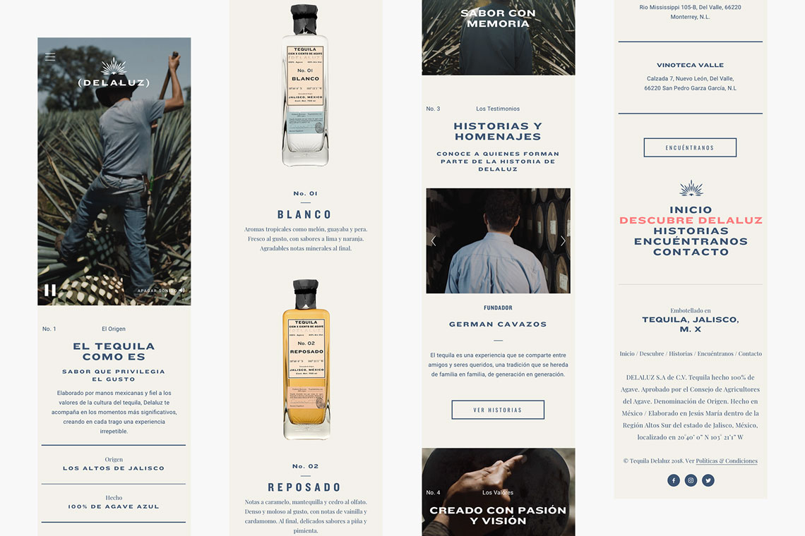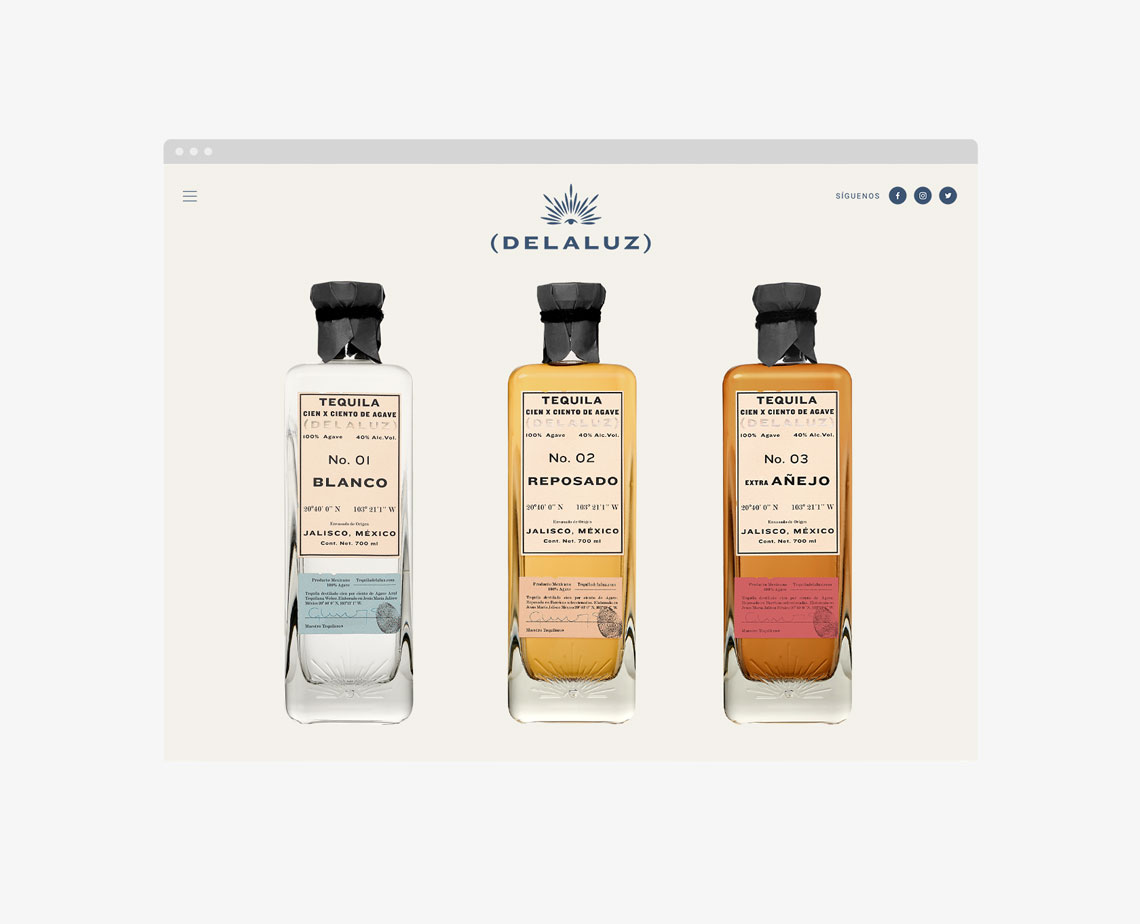 We managed to capture the brand typographic layouts to the digital medium, preserving its legibility while exhibiting the different types of tequila that are produced in Delaluz.