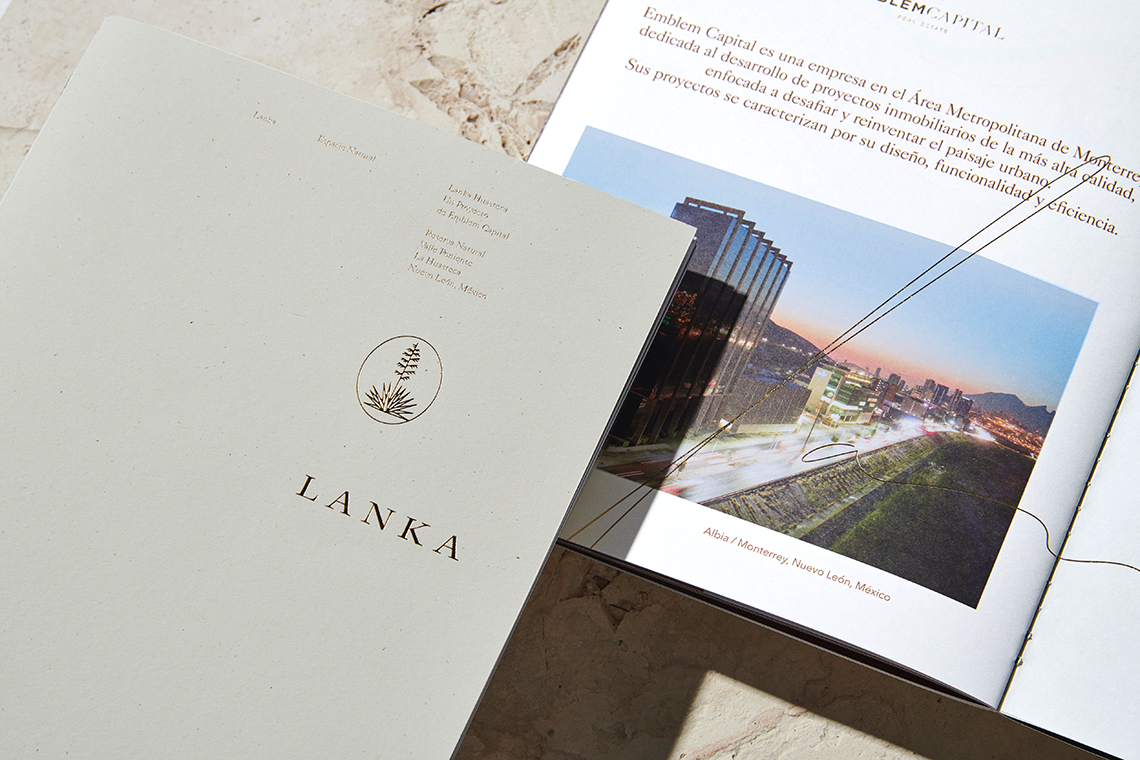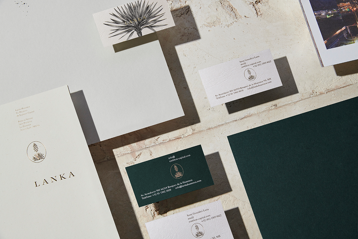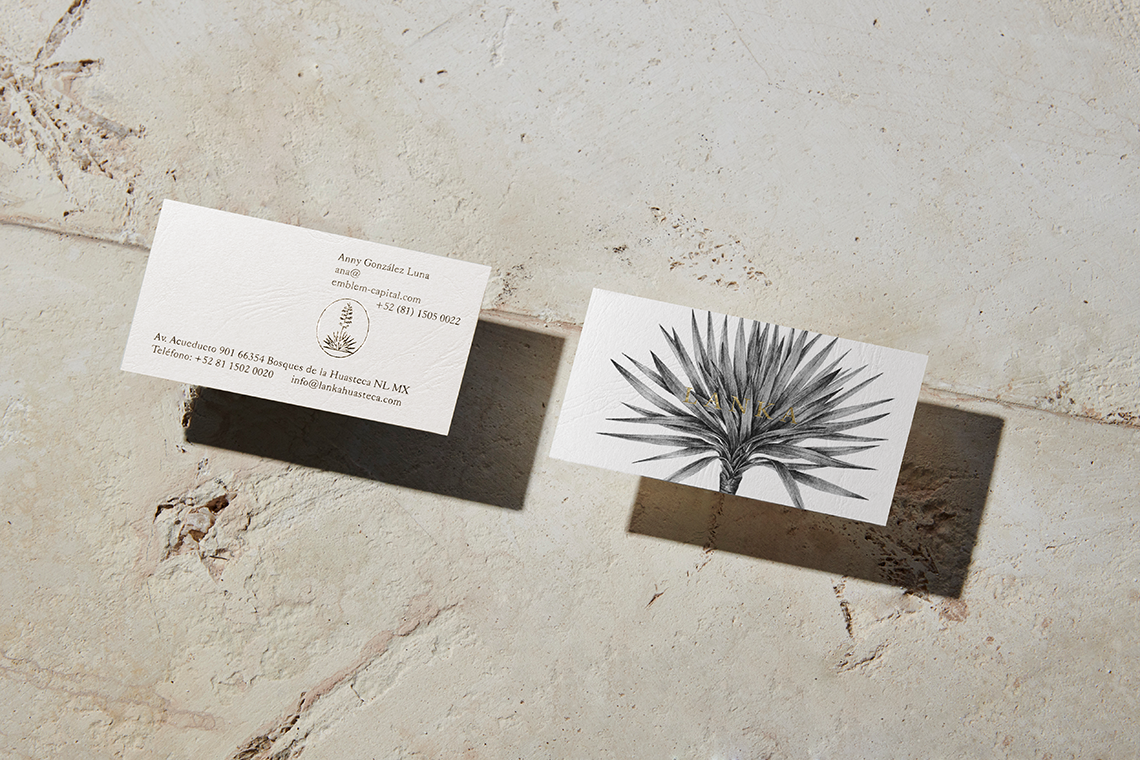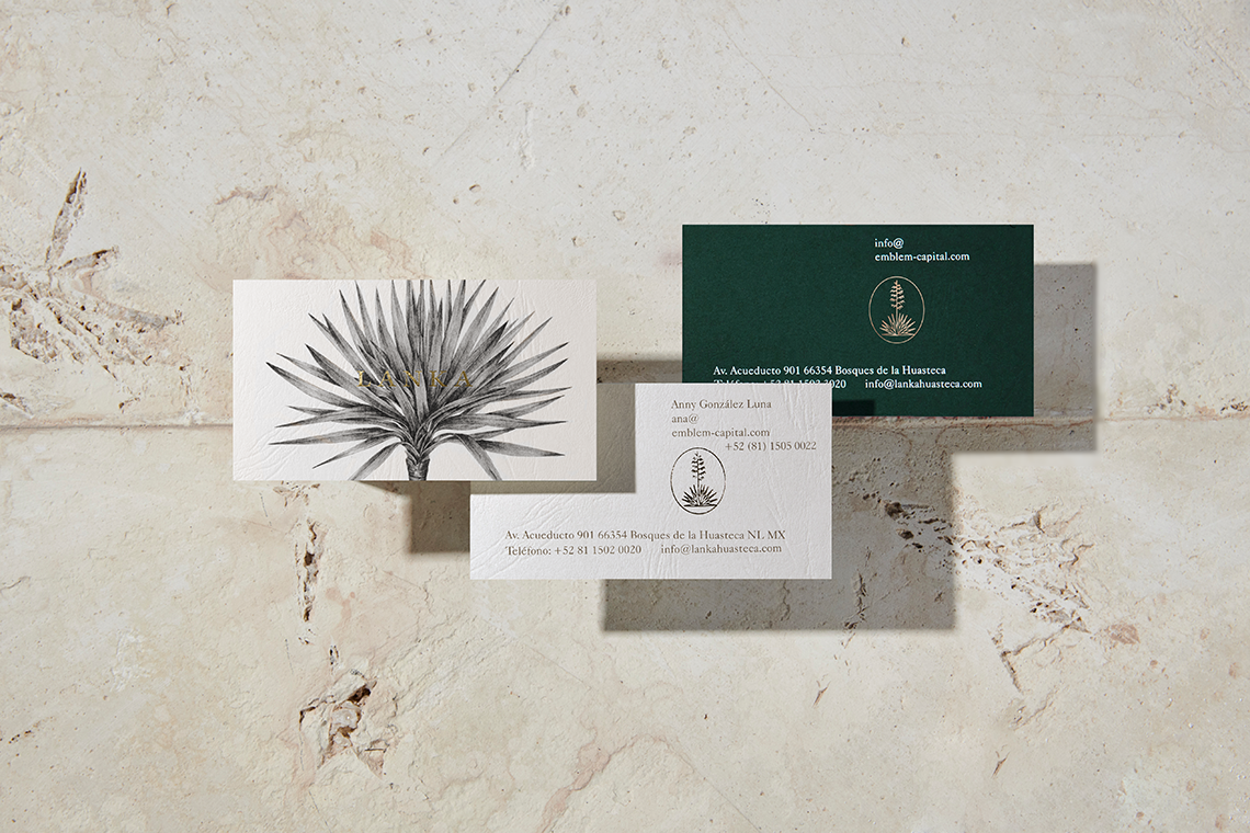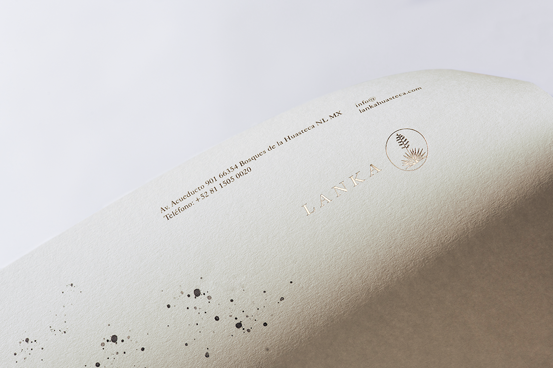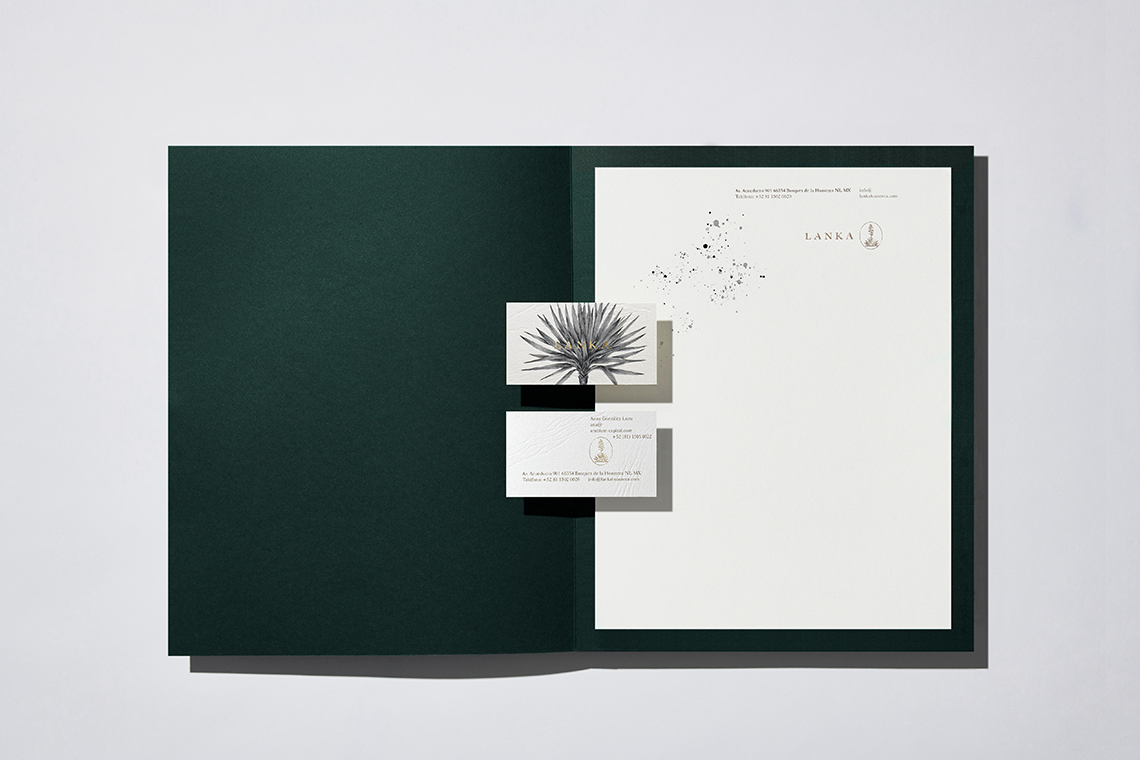 For the Lanka identity, we took inspiration from the vegetation found within the Huasteca, an ecological park located in Santa Catarina, Nuevo León. We took as a representative element the Yucca, a plant characterizing the zone, positioning the brand as a strong link with nature. The splatters, that claim part of the identity, abstractly represent the dry and semi-desert vegetation found within the Huasteca. — (A)