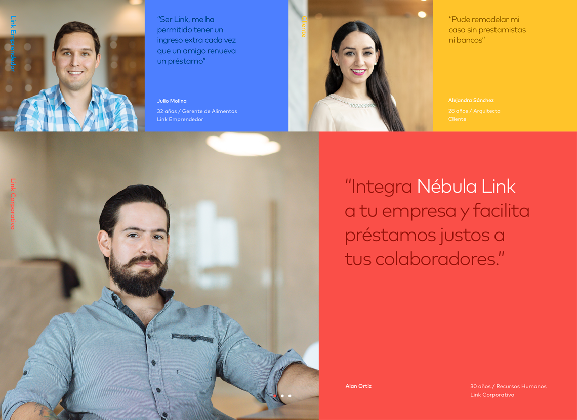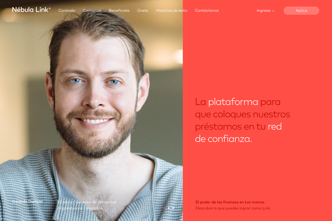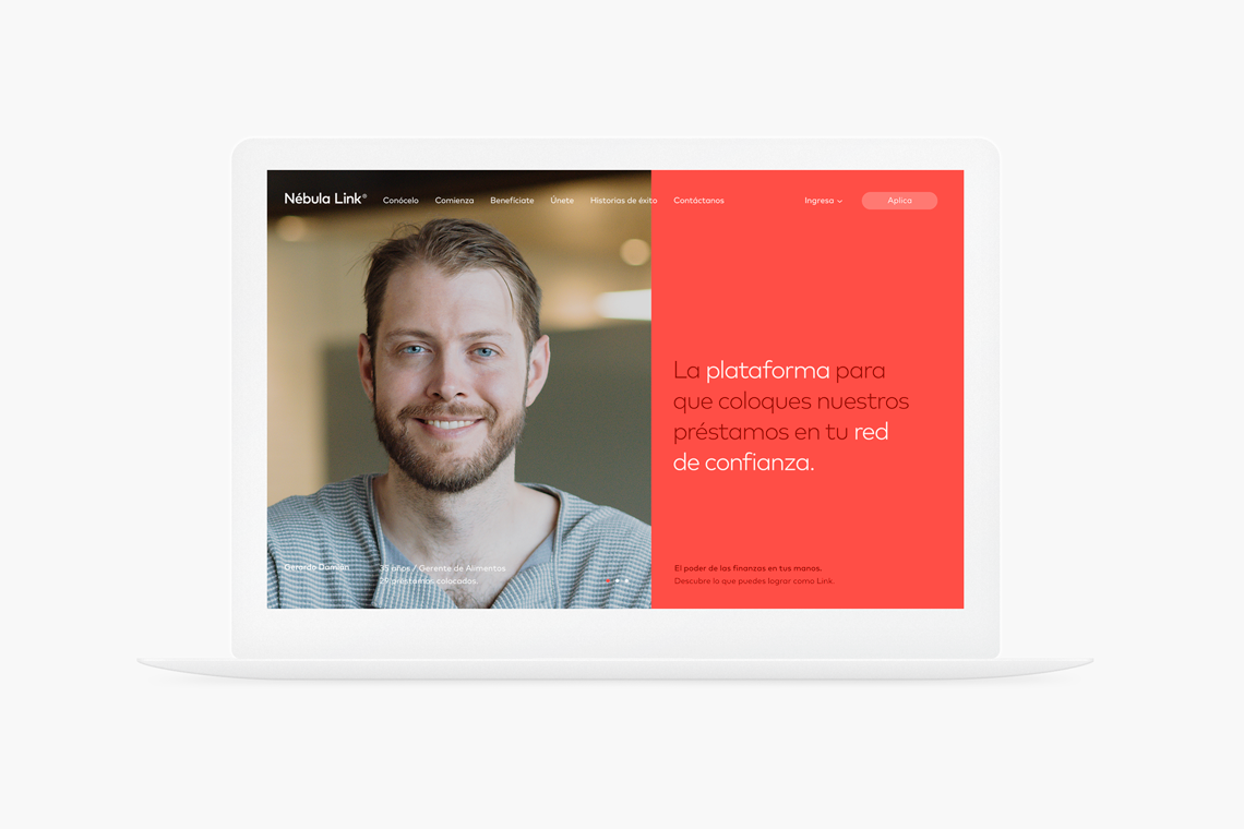 For this project, we delivered brand strategy, naming, branding and user interfase design. The website allows the Link ( a person who offers loans ) to learn how to facilitate loans through a simple and transparent process, as well as the benefits of placing these loans responsibly.